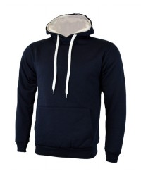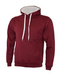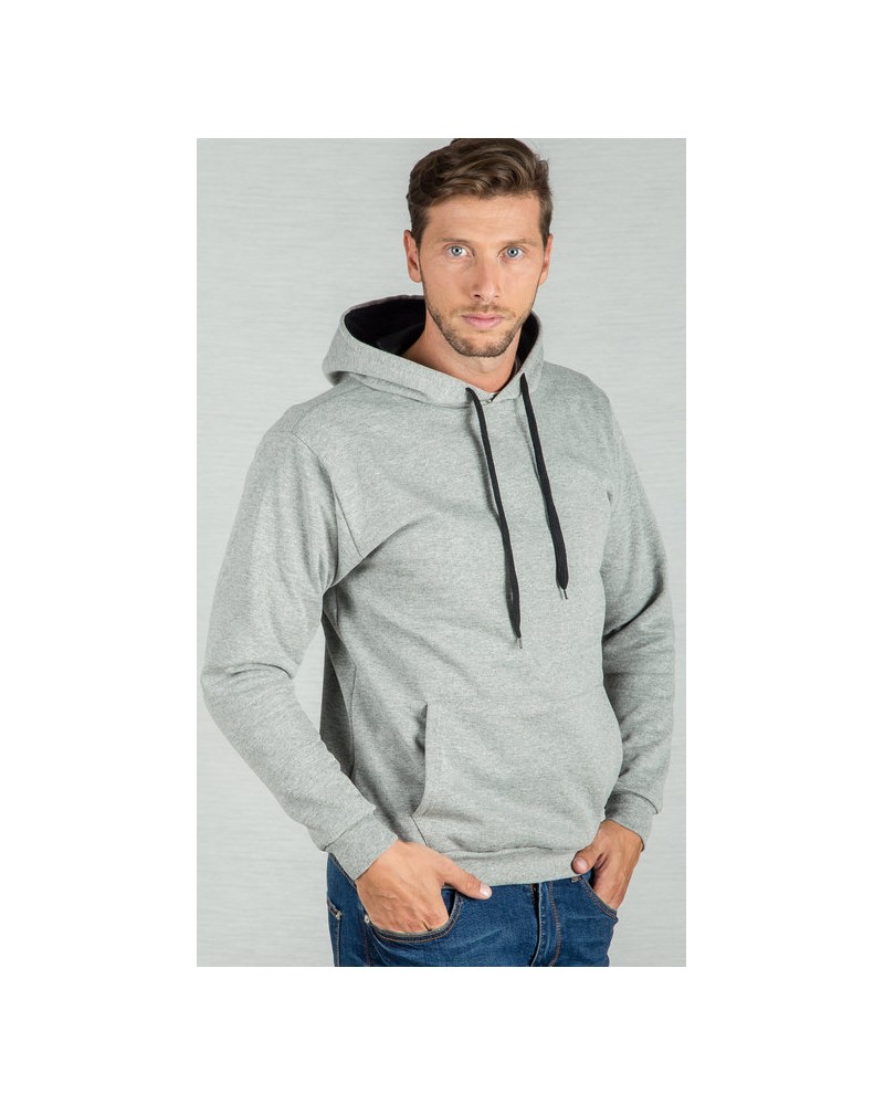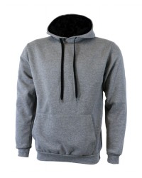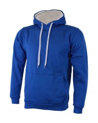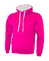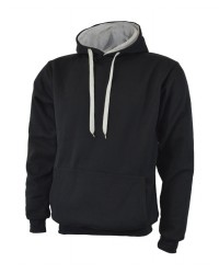 Sudadera capucha bicolor doble tejido, cordón contrastado y bolsillo canguro.